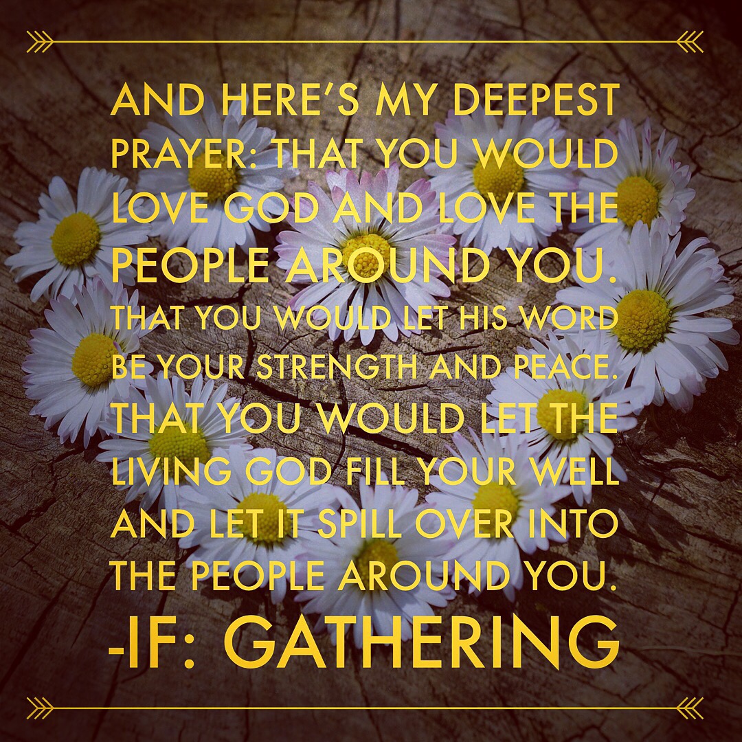 “And here’s my deepest prayer: that you would love God and love the people around you. That you would let His Word be your strength and peace. That you would let the Living God fill your well and let it spill over into the people around you.” If: Gathering
